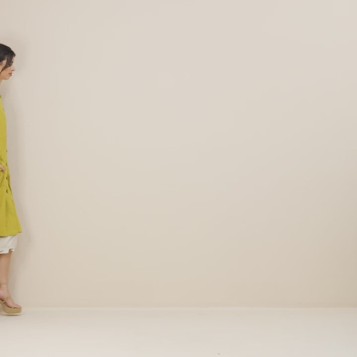At the back, the coat is thoughtfully designed with a center pleat at the waist, enhancing its shape and movement. While we like to wear this on the loose side, you can size down for a more tailored appearance. Versatile and stylish, this coat can be worn open for a casual look or buttoned up as a dress, making it a perfect addition to your summer wardrobe.