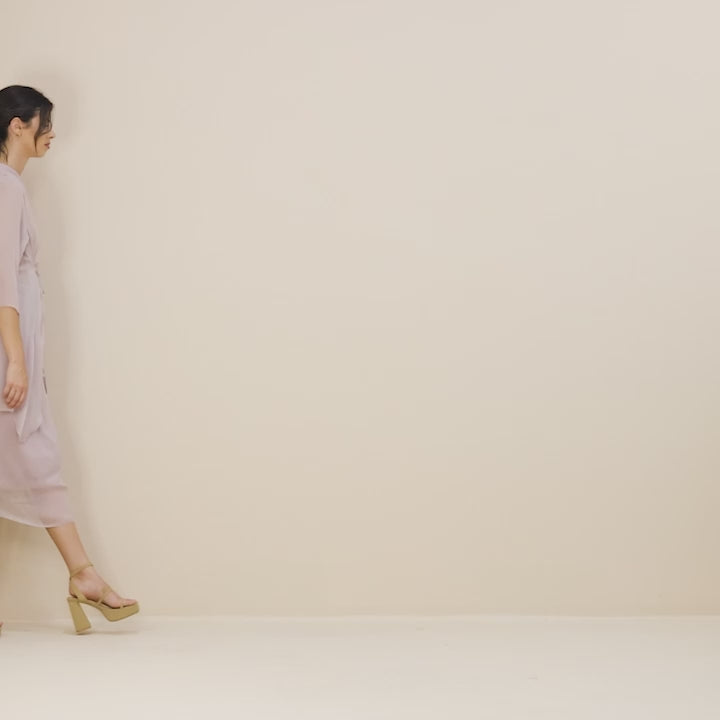 The silk iman tunic is crafted from 100% silk georgette, a lightweight, breathable fabric with a soft crinkle texture, semi-sheer finish, and elegant matte appearance