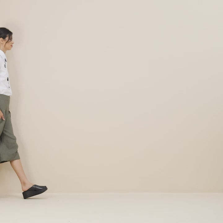 The lulu plus fours embody the characteristics of their inspiration. With pleats at the front and back for controlled volume, baggy fit in the leg and cuffed at the hem. Featuring a yoke at the waist for some gentle structure and a flattering silhouette. There is also a sturdy zip at the fly front and hook and bar for extra security. With handy side pockets, and welt pockets on the back for a tailored finish.