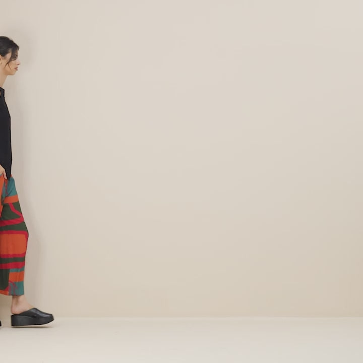 The origin crepe 7/8 mariner pant showcases a striking original Megan Salmon print. This style is a cropped take on our classic mariner pant design. Sleek through the hips, it features an invisible center-front zip for a smooth, bulk-free look.