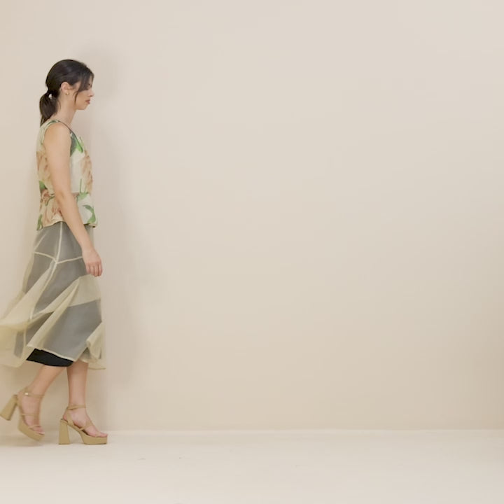 The roses camisole is an elegant top perfect for special occasions and featuring a stunning original Megan Salmon print. A classic bodice that finishes at the waist, with a short peplum skirt that gently flares out from it to give a flattering silhouette.